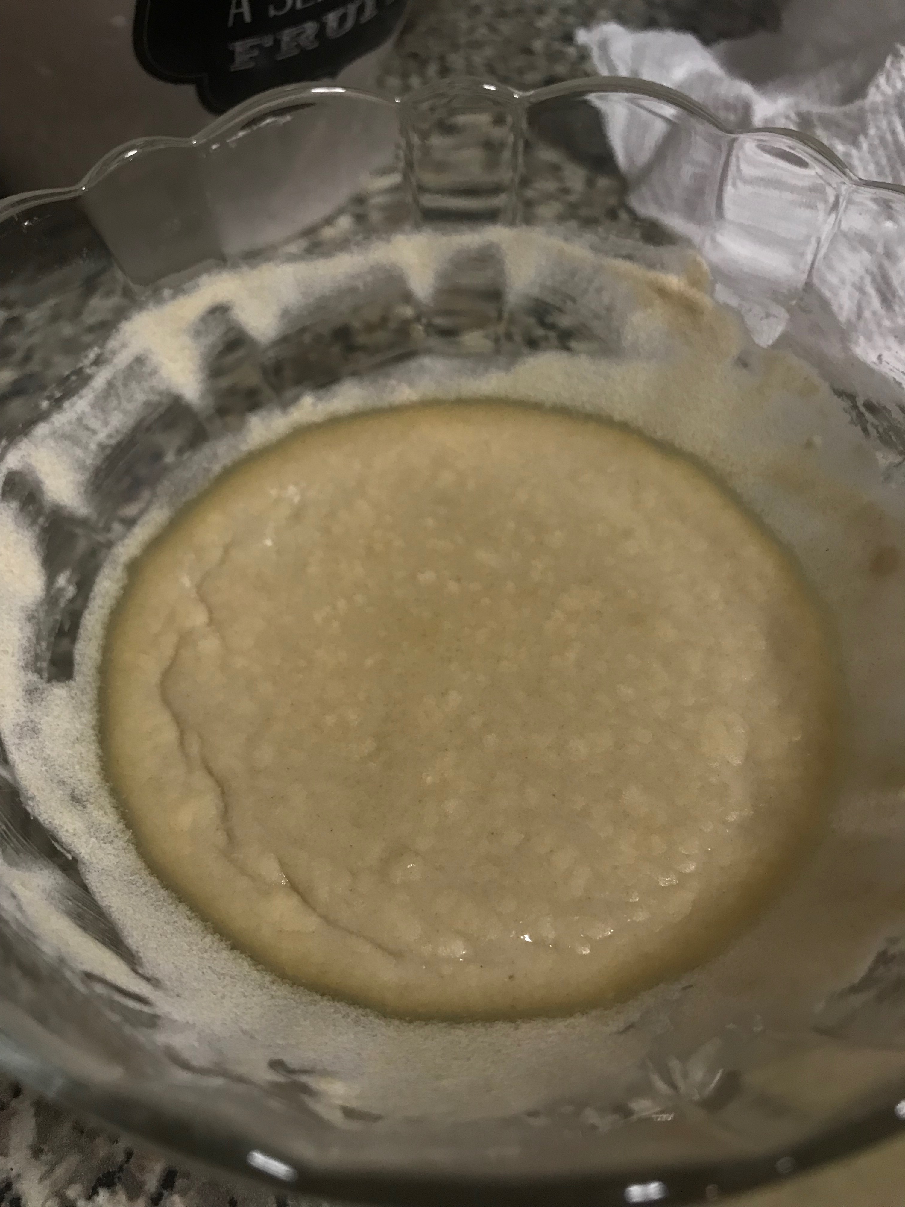 The night before, on April 17, I prepared a final bulk batch of my culture that I would then use to produce the leavening agent for my bread. I prepared the final bulk using a mix of 1 2/3 cups of the flour mix, 1 tbsp of the culture that I’ve been growing, and enough water to leave the culture with a smooth consistency. I then left it to ferment in its usual spot within the kitchen.